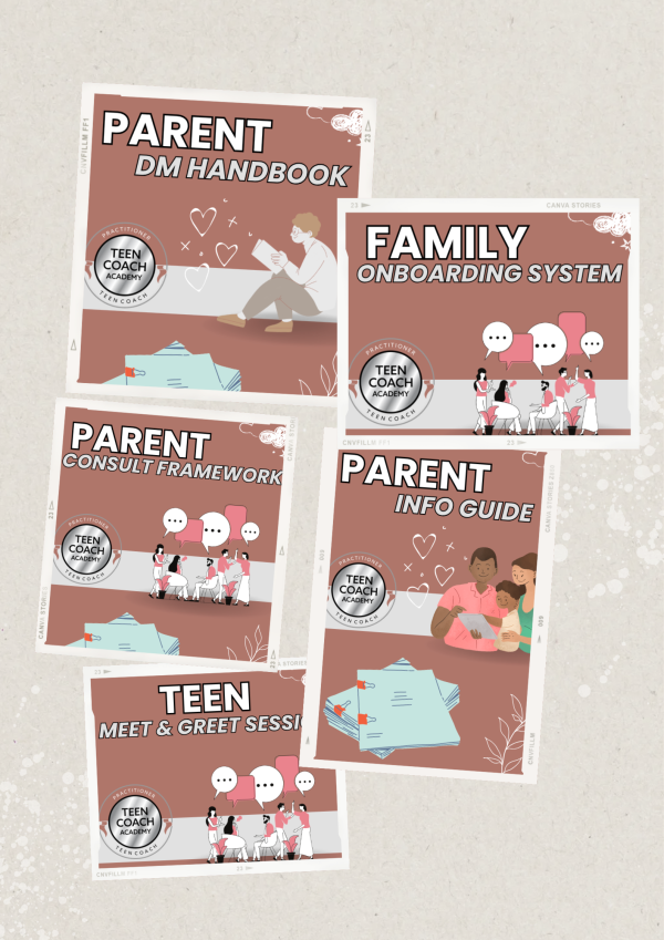 [HIGHLY RECOMMENDED] Important: If you want to save yourself 30+ hours of work and thinking time, we strongly encourage you to upgrade your order to include the Teacher-Coach Starter Kit. When you snag this, you will be able to leverage our proven frameworks to massively reduce your workload, increase your certainty with parents who want to buy coaching from you. If you feel overwhelmed easily, this is a must. If you don’t have a lot of time to squander, this is for you. Included are family onboarding system, teen meet and greet workbook, DM scripts, parent application form, parent/teen information guide, parent consult script and follow up email/text scripts.